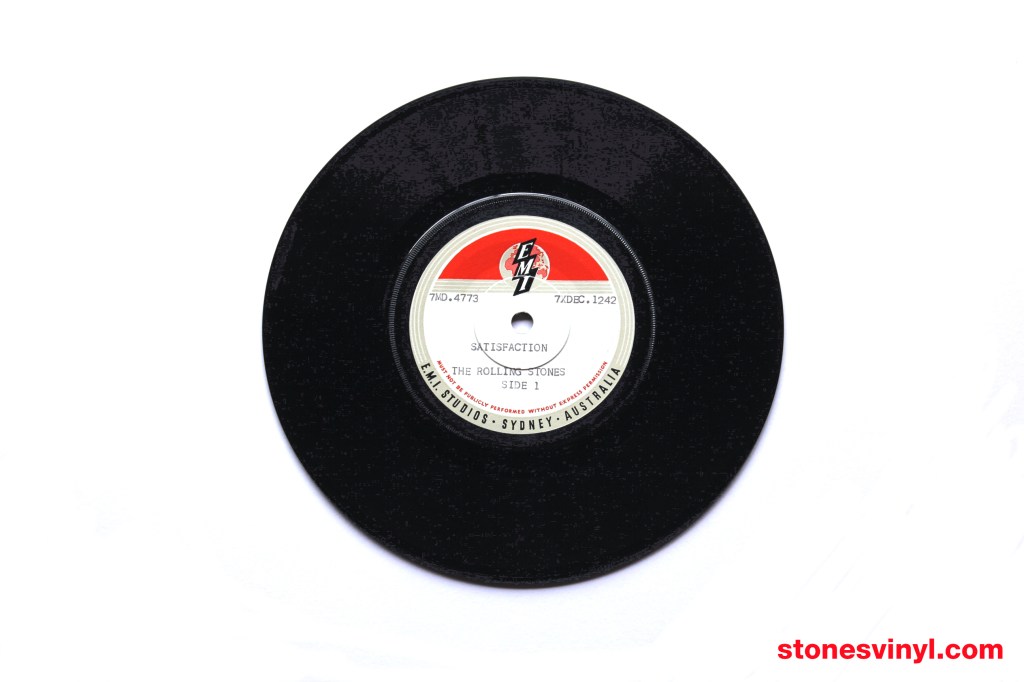 Rare test pressing for the ‘Satisfaction’ EP released in Australia in 1969. Pressed by EMI in Sydney Australia, with EMI labels. Tracklist side A: As Tears Go By / (I Can’t Get No) Satisfaction. Tracklist side B: Fortune Teller / 19th Nervous Breakdown. Matrix side A: 7XDEC 1242. Matrix side B: 7XDEC 1243.