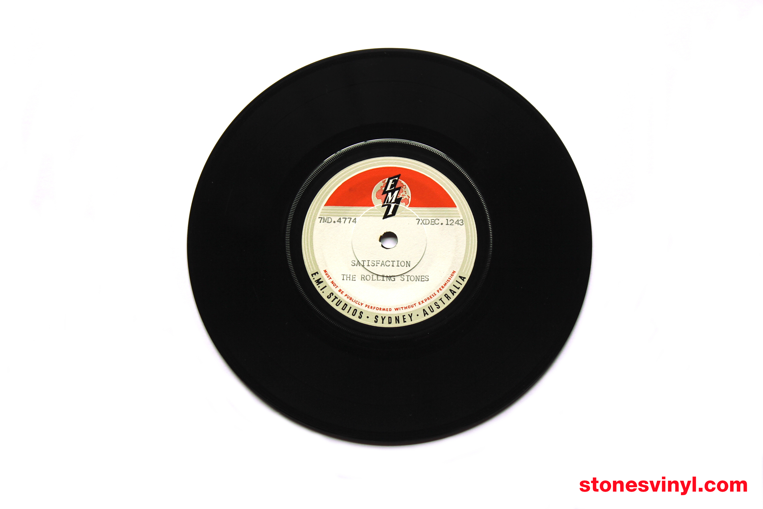 Rare test pressing for the ‘Satisfaction’ EP released in Australia in 1969. Pressed by EMI in Sydney Australia, with EMI labels. Tracklist side A: As Tears Go By / (I Can’t Get No) Satisfaction. Tracklist side B: Fortune Teller / 19th Nervous Breakdown. Matrix side A: 7XDEC 1242. Matrix side B: 7XDEC 1243.