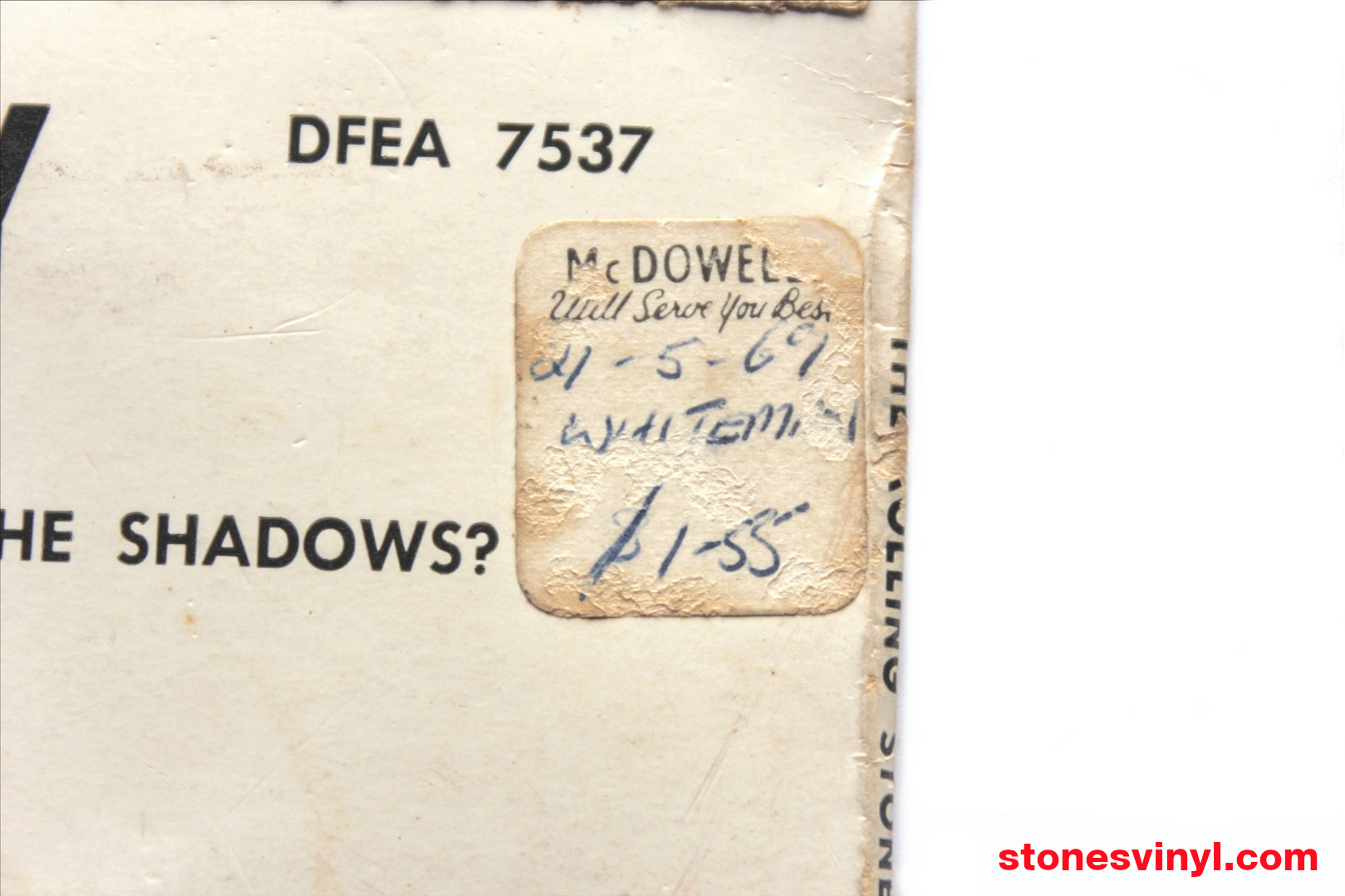 ‘McDowells’ retail price sticker on back sleeve. McDowells was a department store located in George St, Sydney.