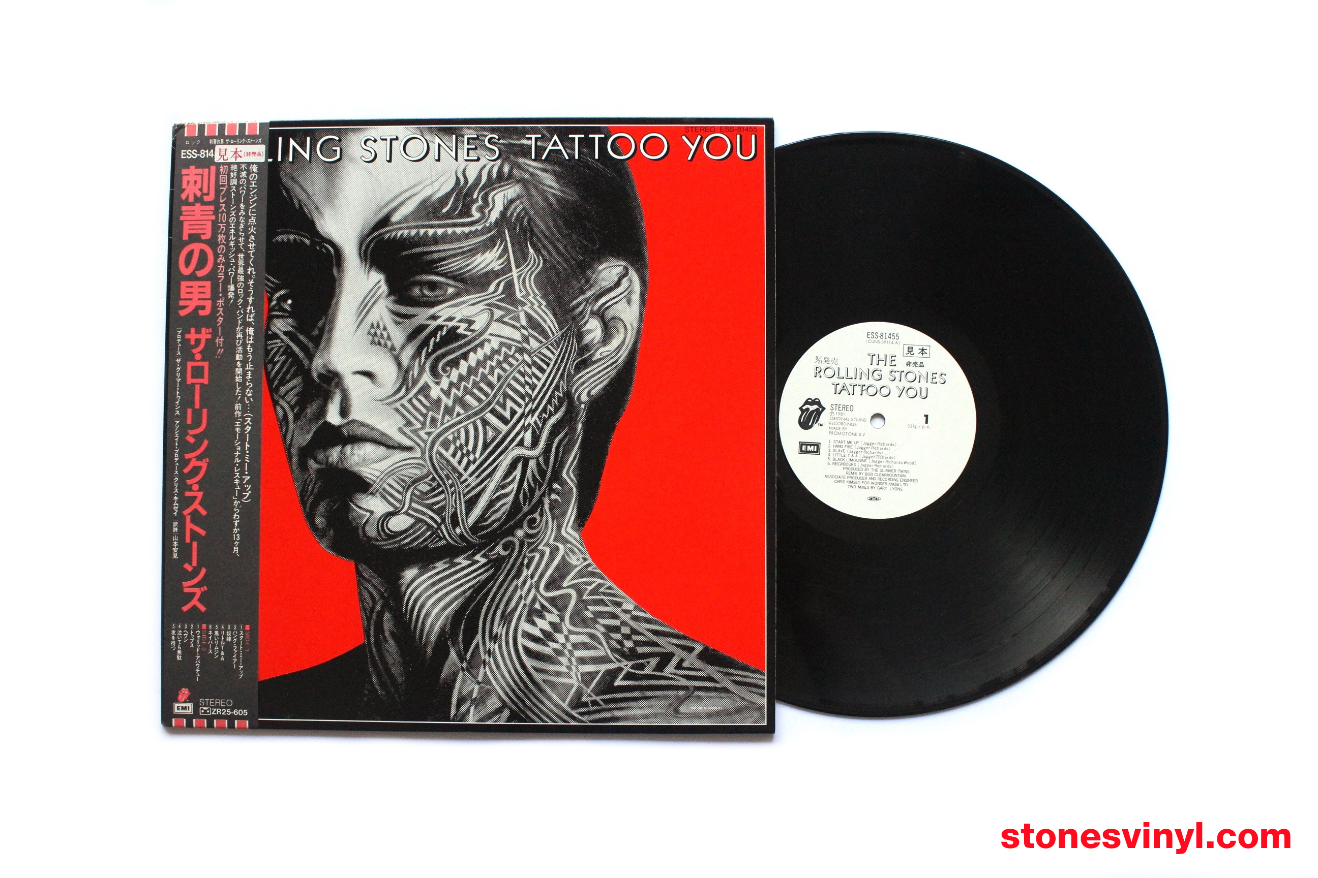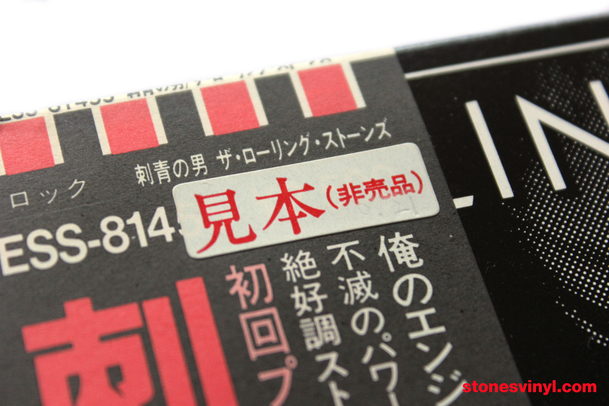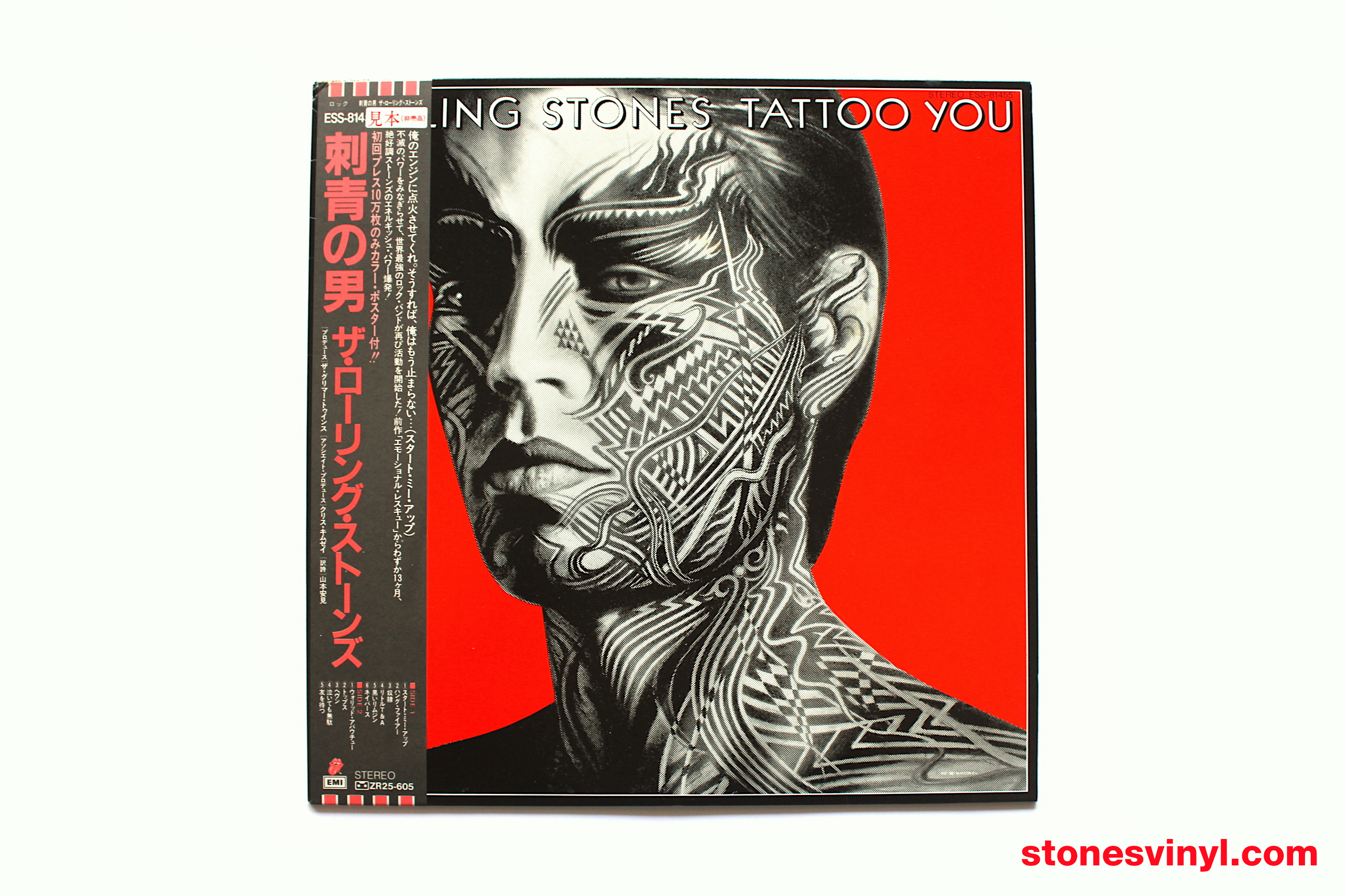‘Tattoo You’ white label promo LP released in Japan in 1981. Cat: ESS 81455. Includes black OBI with promo sticker. Tracklist side A: Start Me Up, Hang Fire, Slave, Little T&A, Black Limousine, Neighbours. Tracklist side B: Worried About You, Tops, Heaven, No Use In Crying, Waiting On A Friend. Matrix side A: CUNS-39114-A 1S. Matrix side B: CUNS-39114-B 1S.