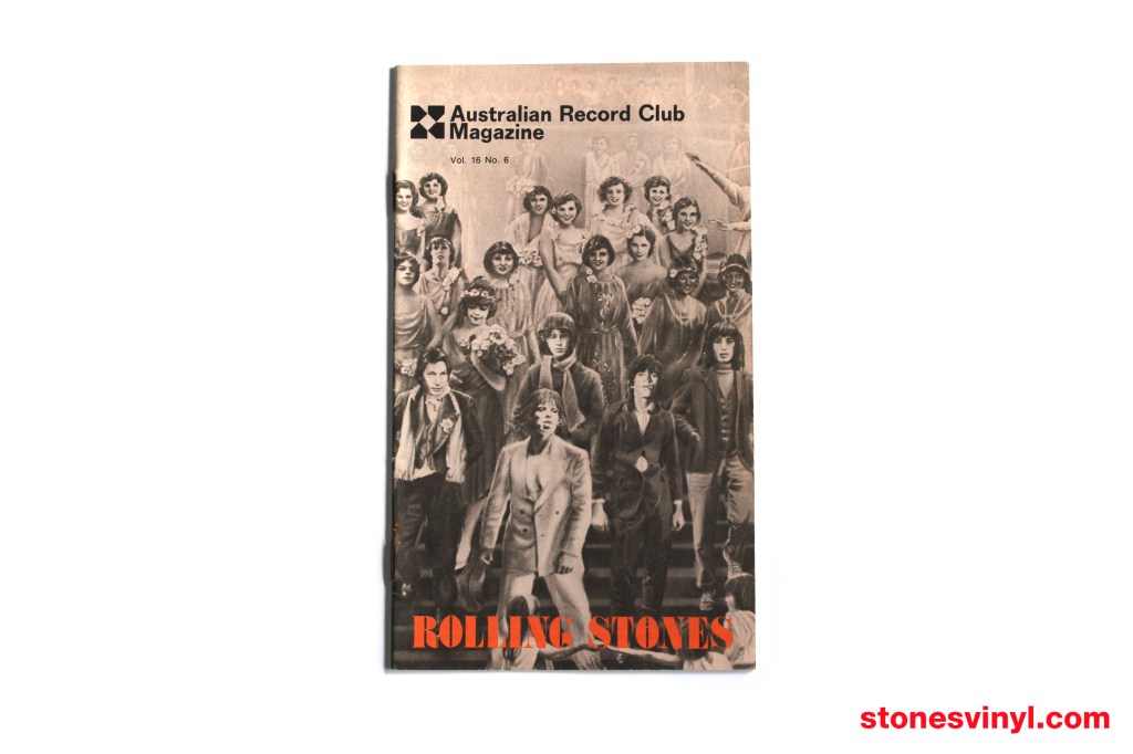 The Australian Record Club Magazine Vol.16 No.6 features a front cover and full page article promoting the Australian Record Club 1974 pressing of the ‘It’s Only Rock ‘n Roll’ LP. This particular LP pressing comes with rear sleeve stating “Distributed in Australia under Licence from WEA Records Pty Ltd”.