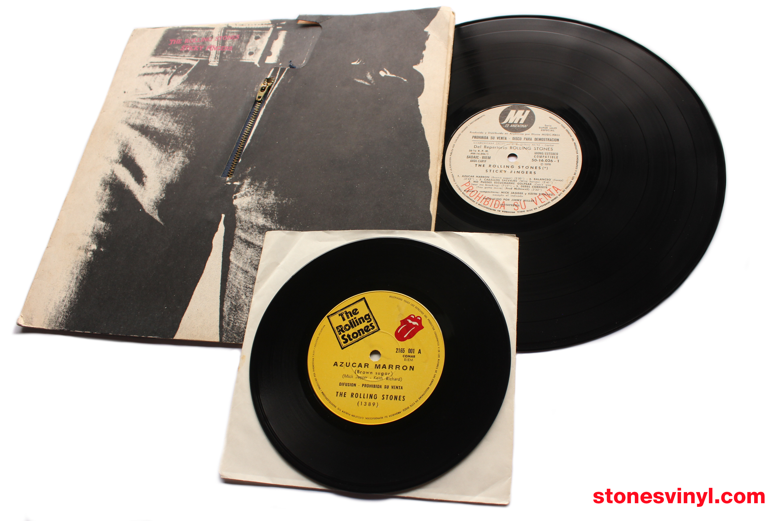 > Argentina ‘Sticky Fingers’ (1976) white label promo LP, cat: 50-16.026.