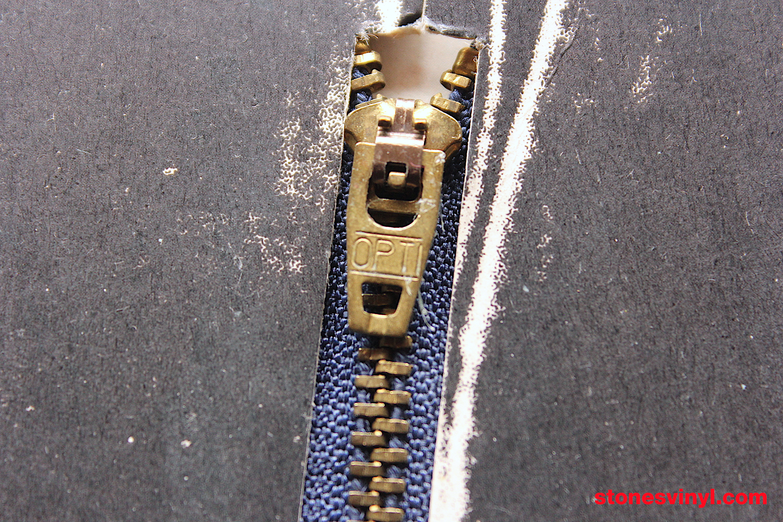 Closeup front sleeve zip detail: