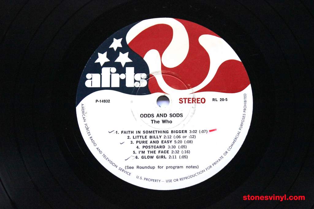 ‘It’s Only Rock ‘n Roll’ LP released in USA in 1974. Cat: P-14931/P-14932. Tracklist side A: ‘Rolling Stones – It’s Only Rock ‘n Roll’: Dance Little Sister, If You Really Want To Be My Friend, If You Can’t Rock Me, Till The Next Goodbye. Tracklist side B: ‘The Who – Odds And Sods’: Faith In Something Bigger, Little Billy, Pure And Easy, Postcard, I’m The Face, Glow Girl.