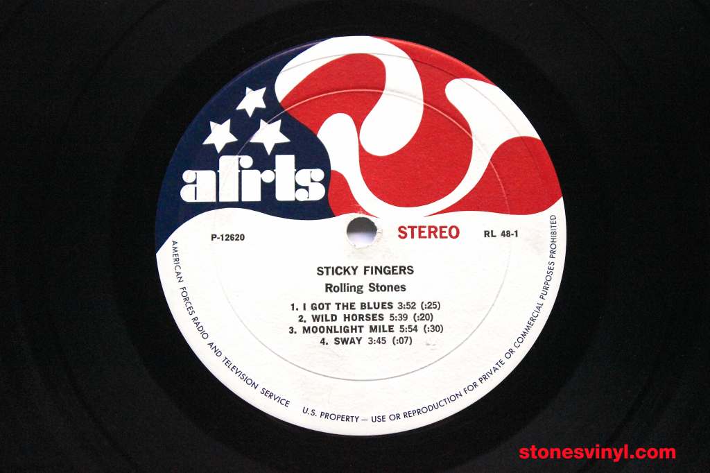 ‘Sticky Fingers’ LP released in USA in 1971. Cat: P-12619/P-12620. Tracklist side B: ‘Rolling Stones – Sticky Fingers’: I Got The Blues, Wild Horses, Moonlight Mile, Sway. Tracklist side A: ‘Procol Harum – Broken Barricades’: Simple Sister, Broken Barricades, Song For A Dreamer, Memorial Drive.
